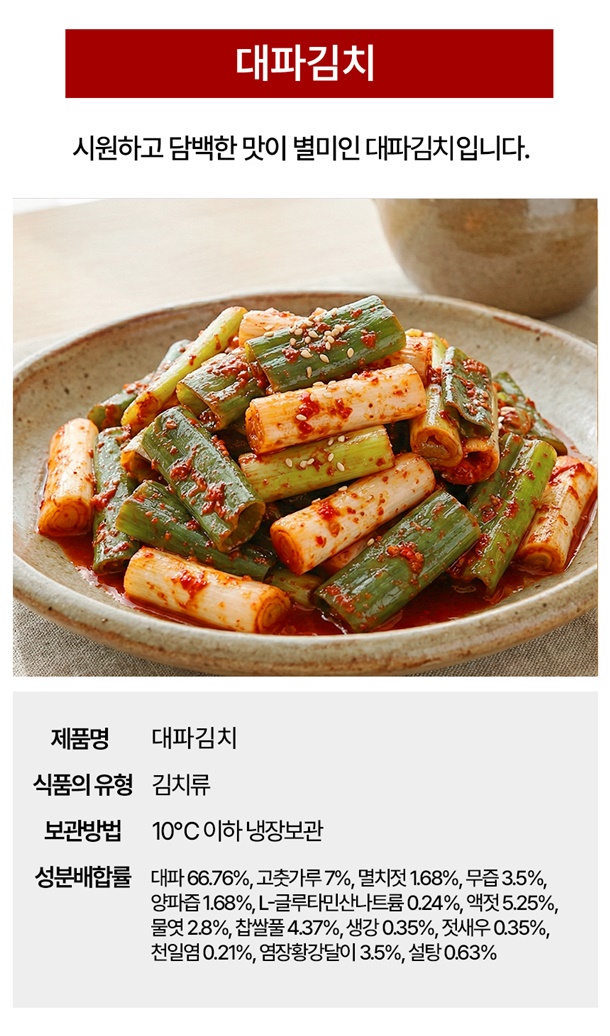 전라도 대파김치 남도식 국산 국내산