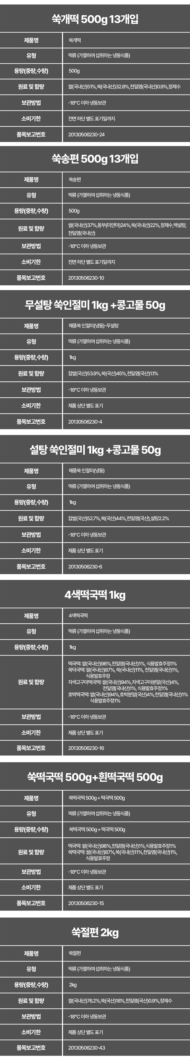 찐쑥 개떡 송편 인절미 떡국떡 모음