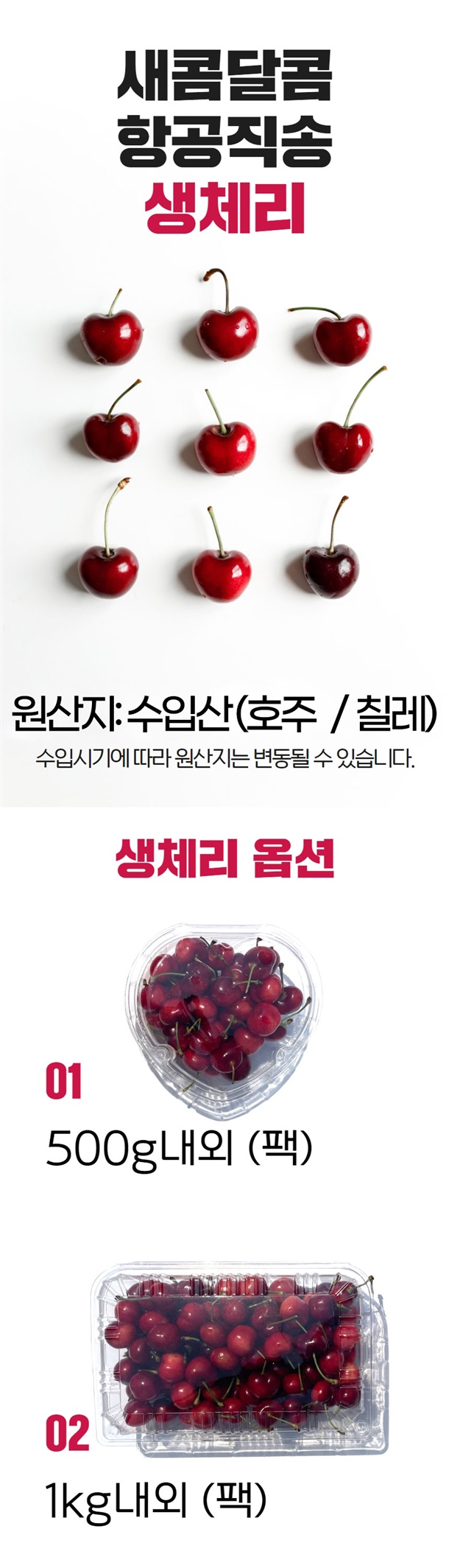 ★초특가★ 칠레산 고당도 생체리 500g 1kg 2kg 1키로 왕체리